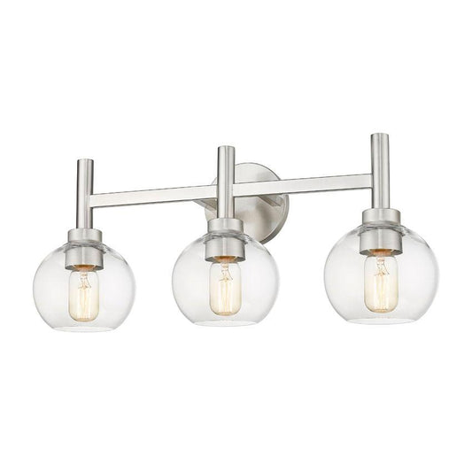 Z-Lite Sutton 3-Light Brushed Nickel Steel Frame Clear Glass Shade Vanity Light