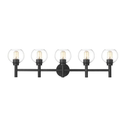 Z-Lite Sutton 5-Light Matte Black Steel Frame Clear Glass Shade Vanity Light