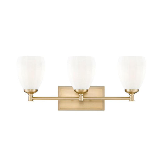 Z-Lite Oren 3-Light Medium Bulb Base Modern Gold Steel Frame Matte Opal Glass Shade Vanity Light