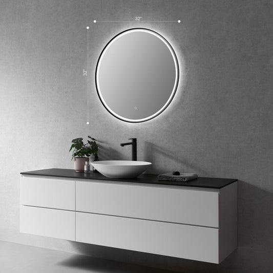 Altair Palme 32" Round Matte Black Wall-Mounted LED Mirror