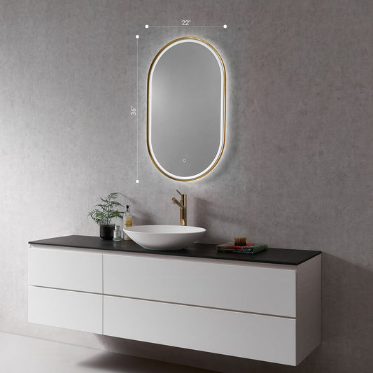 Altair Oleggio 22" Oval Brushed Gold Wall-Mounted LED Mirror