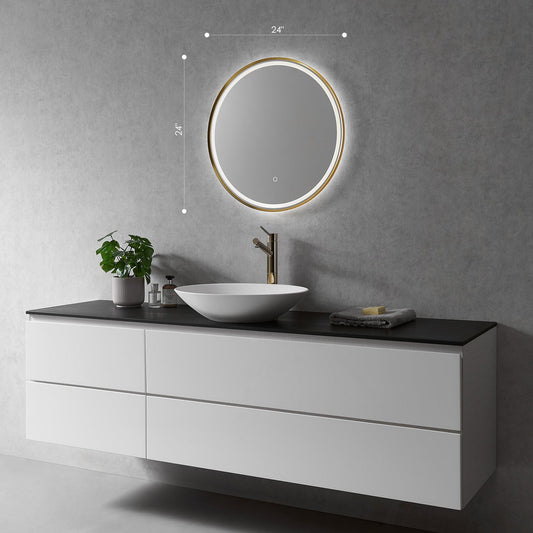 Altair Palme 24" Round Brushed Gold Wall-Mounted LED Mirror