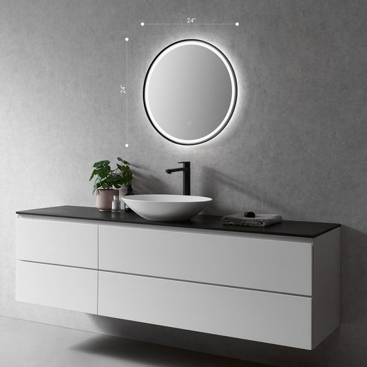 Altair Palme 24" Round Matte Black Wall-Mounted LED Mirror