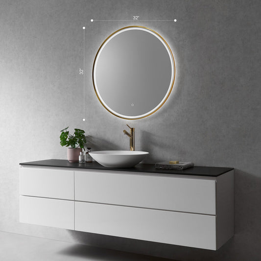 Altair Palme 32" Round Brushed Gold Wall-Mounted LED Mirror