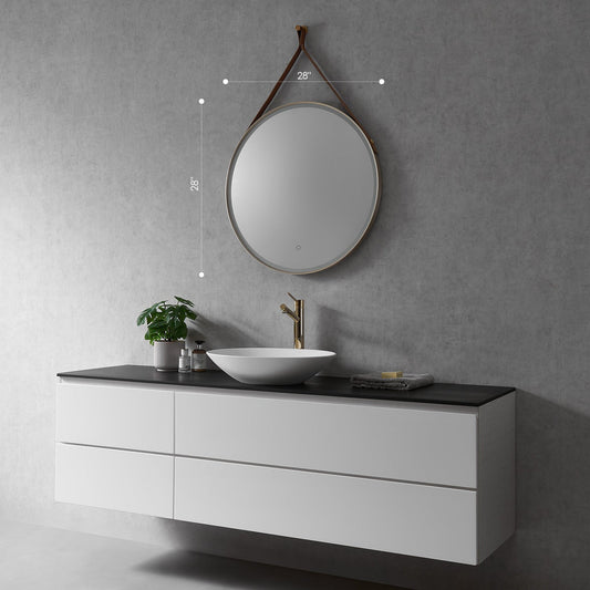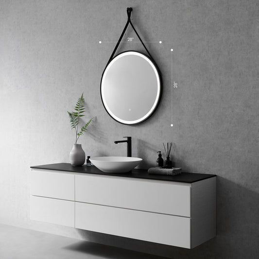Altair Roccia 28" Round Matte Black Wall-Mounted LED Mirror