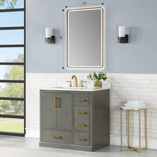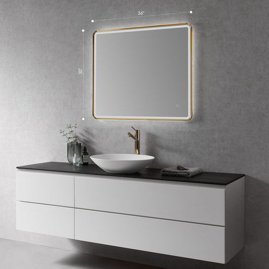 Altair Viaggi 36" Rectangle Brushed Gold Wall-Mounted LED Mirror