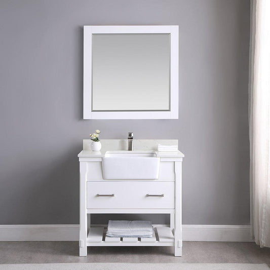 Altair Georgia 36" Single White Freestanding Bathroom Vanity Set With Mirror, Aosta White Composite Stone Top, Rectangular Farmhouse Sink, Overflow, and Backsplash
