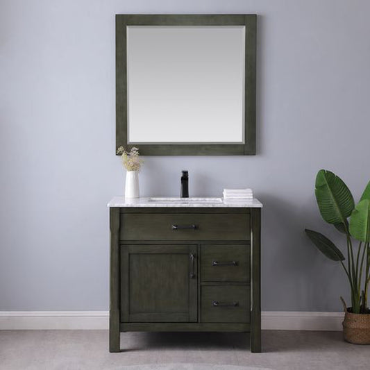 Altair Maribella 36" Single Rust Black Freestanding Bathroom Vanity Set With Mirror, Natural Carrara White Marble Top, Rectangular Undermount Ceramic Sink, and Overflow