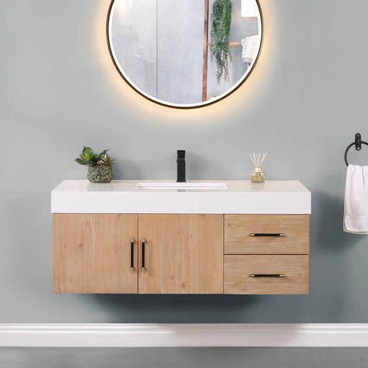 Altair Corchia 48" Light Brown Wall-Mounted Single Bathroom Vanity Set With White Composite Stone Top, Single Rectangular Undermount Ceramic Sink, and Overflow