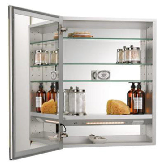 Afina Illume 24" x 30" Recessed Left Hinged Single Door Backlit LED Medicine Cabinet With Inside Electric, Nightlite and Polished Edge Mirror