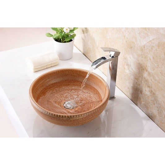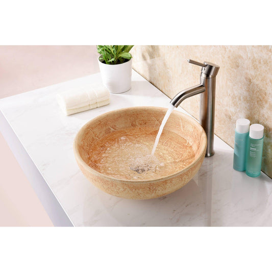 ANZZI Earthen Series 16" x 16" Round Beige Deco-Glass Vessel Sink With Polished Chrome Pop-Up Drain