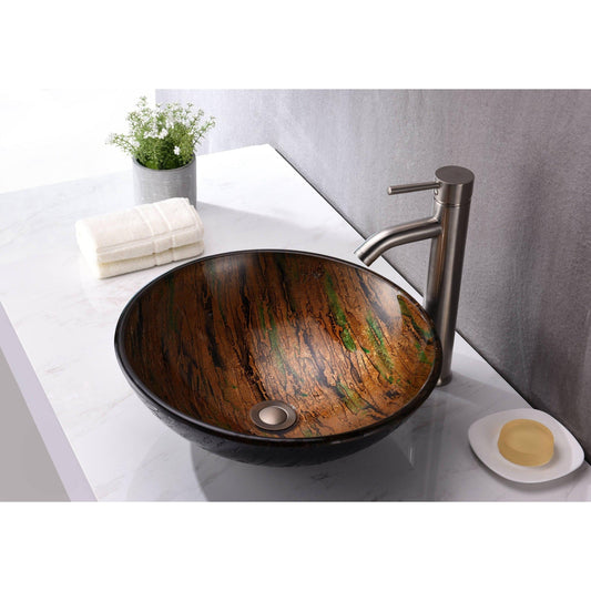 ANZZI Gwazeni Series 17" x 17" Round Shifting Earth Finish Deco-Glass Vessel Sink With Polished Chrome Pop-Up Drain