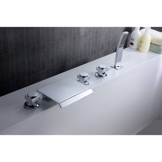 ANZZI Guaira Series 3-Handle Polished Chrome Waterfall Spout Roman Tub Faucet With Euro-Grip Handheld Sprayer