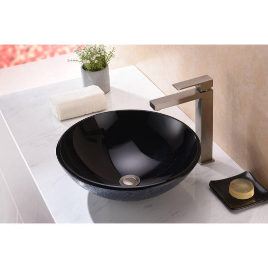 ANZZI Jonas Series 17" x 17" Round Arctic Sheer Deco-Glass Vessel Sink With Polished Chrome Pop-Up Drain