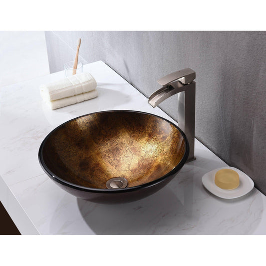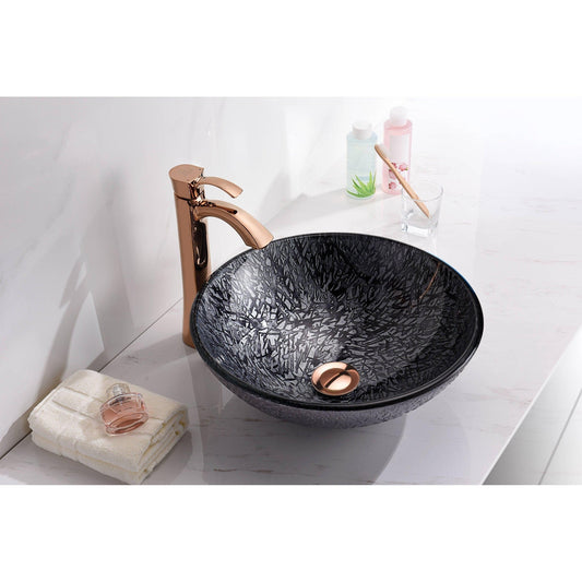 ANZZI Jonas Series 17" x 17" Round Autumns Dusk Deco-Glass Vessel Sink With Polished Chrome Pop-Up Drain