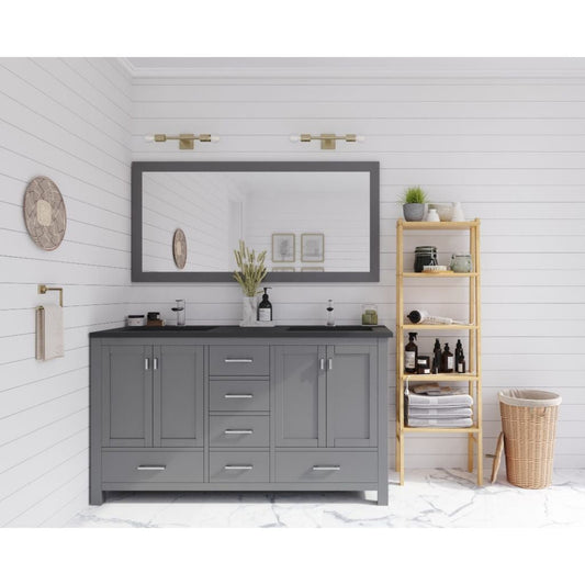 Laviva Wilson 60" Gray Vanity Base and Matte Black Solid Surface Countertop With Double Integrated Sinks