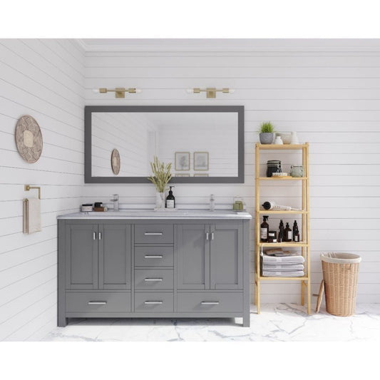 Laviva Wilson 60" Gray Vanity Base and White Carrara Marble Countertop With Double Rectangular Ceramic Sinks