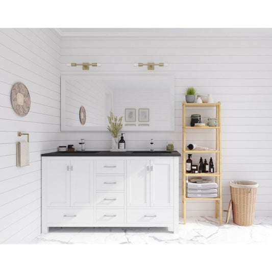 Laviva Wilson 60" White Vanity Base and Black Wood Marble Countertop With Double Rectangular Ceramic Sinks