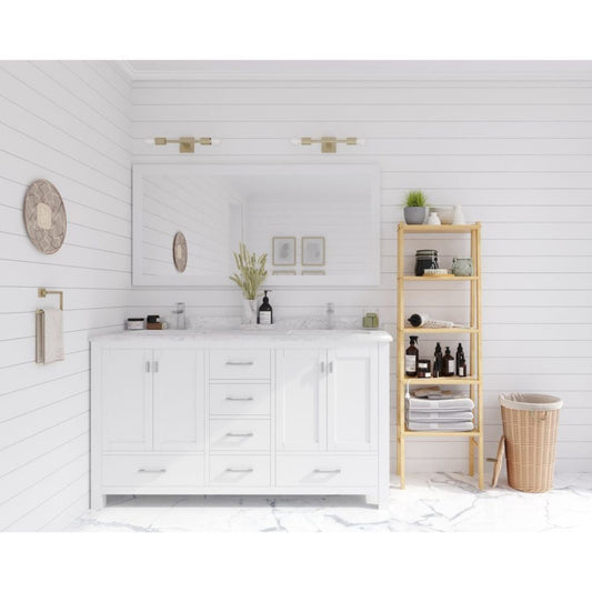 Laviva Wilson 60" White Vanity Base and White Carrara Marble Countertop With Double Rectangular Ceramic Sinks