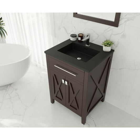 Laviva Wimbledon 24" Brown Vanity Base and Matte Black Viva Stone Solid Surface Countertop With Integrated Sink