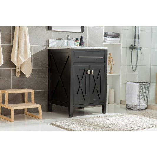 Laviva Wimbledon 24" Brown Vanity Base and White Carrara Marble Countertop With Rectangular Ceramic Sink