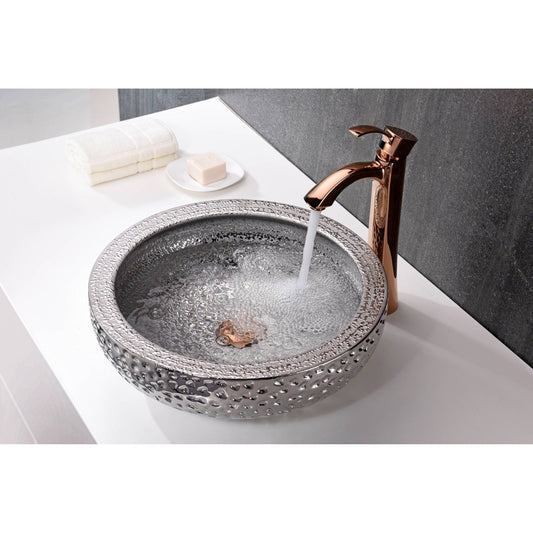 ANZZI Levi Series 17" x 17" Round Speckled Silver Deco-Glass Vessel Sink in Finish With Polished Chrome Pop-Up Drain