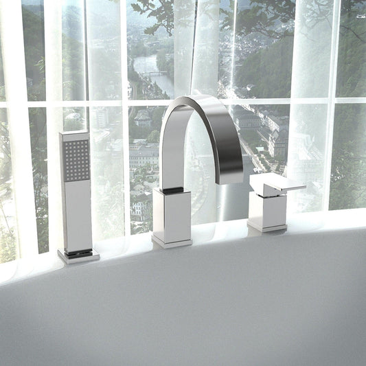 ANZZI Nite Series Single Handle Polished Chrome Roman Tub Faucet With Euro-Grip Handheld Sprayer