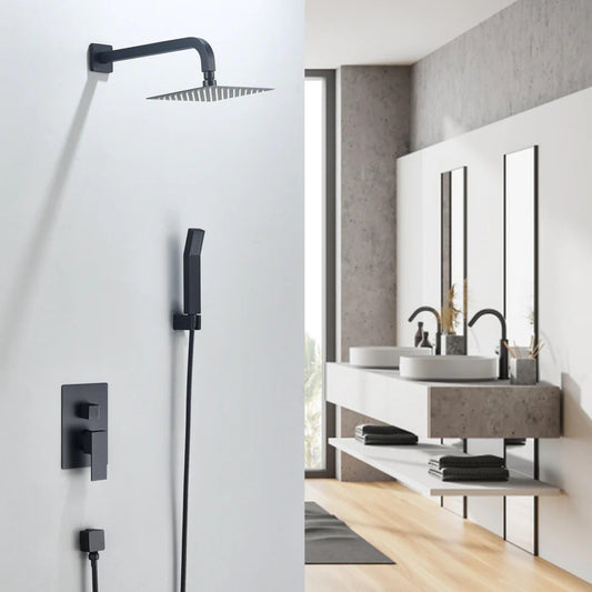 Altair Raeren Matte Black Complete Shower System With 8" Square Rain Shower Head and Rough-In Valve