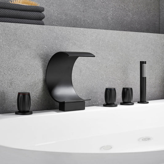 Altair Recea Matte Black Triple Handle Deck-mounted Bathtub Faucet With Handshower and Diverter