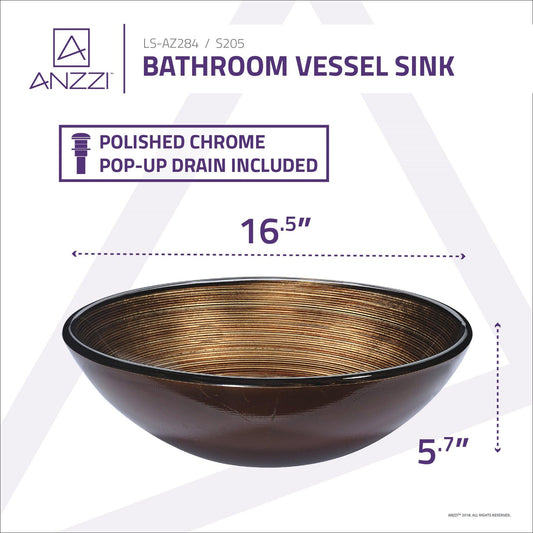 ANZZI Posh Series 17" x 17" Round Radial Umber Deco-Glass Vessel Sink With Polished Chrome Pop-Up Drain