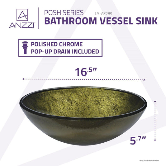 ANZZI Posh Series 17" x 17" Round Verdure Gold Deco-Glass Vessel Sink With Polished Chrome Pop-Up Drain