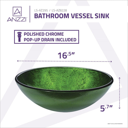 ANZZI Posh Series 17" x 17" Round Verdure Green Deco-Glass Vessel Sink With Polished Chrome Pop-Up Drain