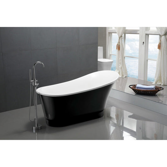 ANZZI Prima Series 67" x 31" Glossy Black Freestanding Bathtub With Built-In Overflow and Pop-Up Drain