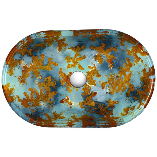 ANZZI Avao Series 22" x 14" Oval Shape Panye Blue Deco-Glass Vessel Sink With Polished Chrome Pop-Up Drain and Waterfall Faucet
