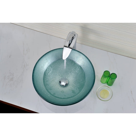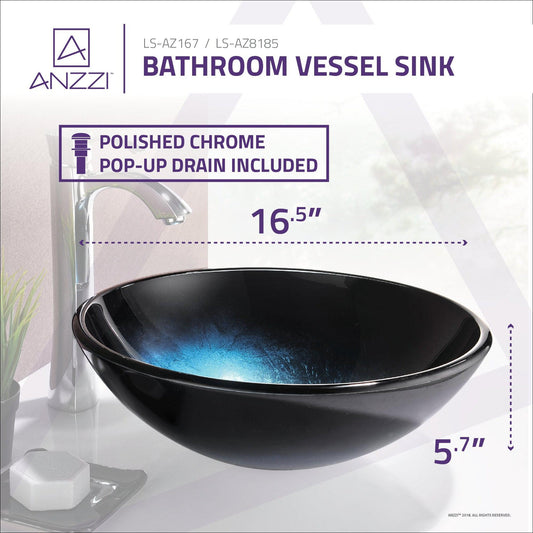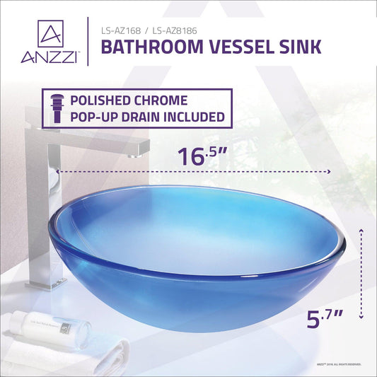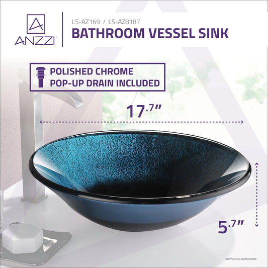 ANZZI Stellar Series 17" x 17" Round Deep Sea Deco-Glass Vessel Sink With Polished Chrome Pop-Up Drain