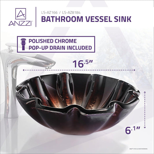 ANZZI Stellar Series 17" x 17" Round Glacial Blaze Deco-Glass Vessel Sink With Polished Chrome Pop-Up Drain