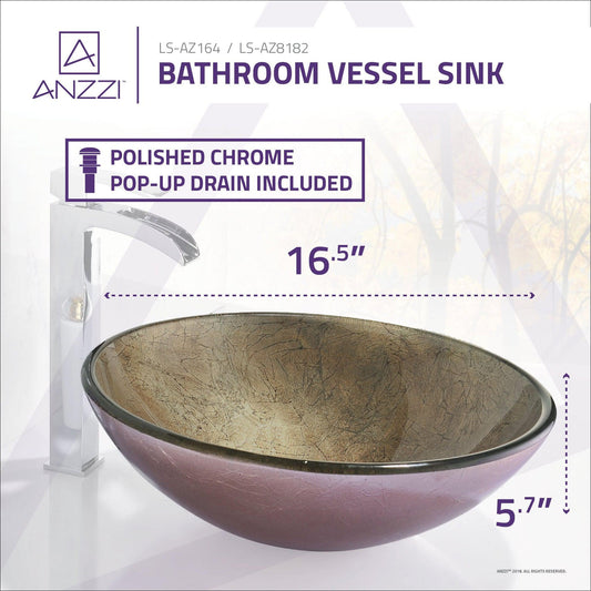 ANZZI Tara Series 17" x 17" Round Glacial Blaze Deco-Glass Vessel Sink With Polished Chrome Pop-Up Drain