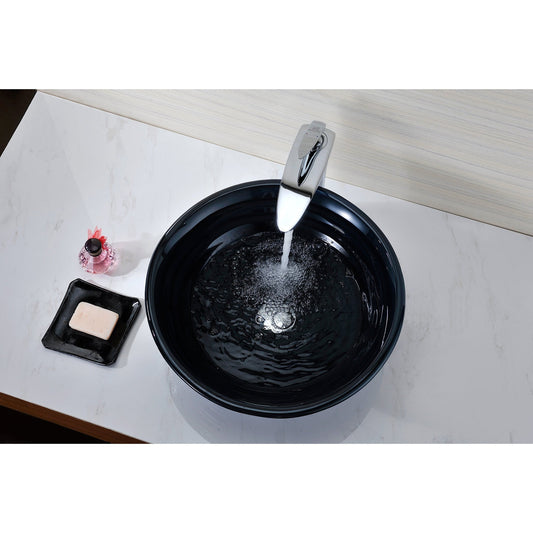 ANZZI Tara Series 17" x 17" Round Deep Sea Deco-Glass Vessel Sink With Polished Chrome Pop-Up Drain