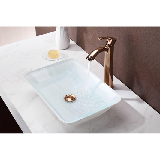 ANZZI Broad Series 19" x 14" Rectangular Glossy White Deco-Glass Vessel Sink With Polished Chrome Pop-Up Drain