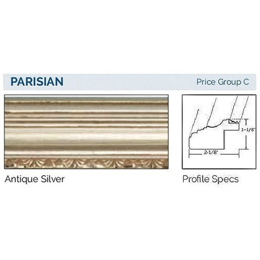 Afina Signature 17" x 36" Parisian Antique Silver Recessed Reversible Hinged Single Door Medicine Cabinet With Beveled Edge Mirror