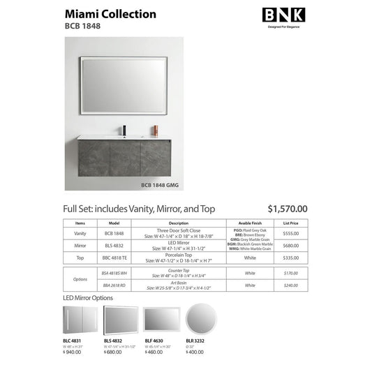 BNK BCB1848GMG Miami Grey Mable Grain Vanity Only Three-Door Soft Close