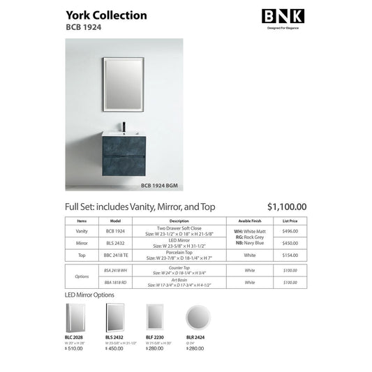 BNK BCB1924BGM York Blackish Green Mable Vanity Only Two Drawer Soft Close
