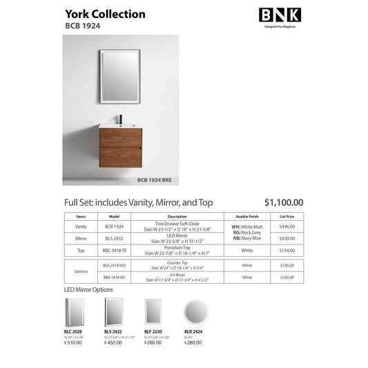 BNK BCB1924BRE York Brown Ebony Vanity Only Two Drawer Soft Close