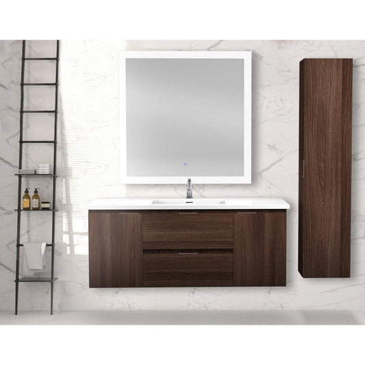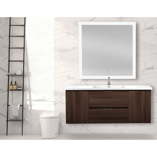 ANZZI Conques 48" x 20" Dark Brown Solid Wood Bathroom Vanity With Glossy White Countertop With Sink and 39" LED Mirror
