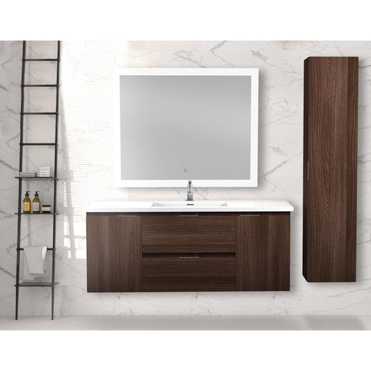 ANZZI Conques 48" x 20" Dark Brown Solid Wood Bathroom Vanity With Glossy White Countertop With Sink, 36" LED Mirror and Side Cabinet