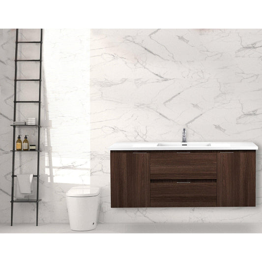 ANZZI Conques 48" x 20" Dark Brown Solid Wood Bathroom Vanity With Glossy White Sink and Countertop