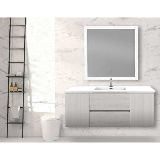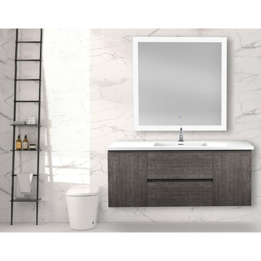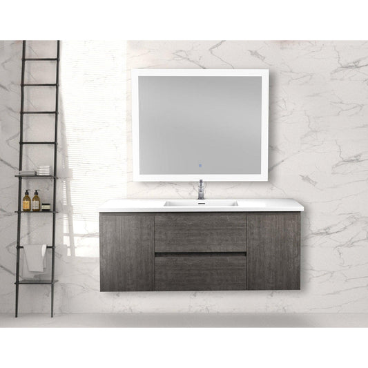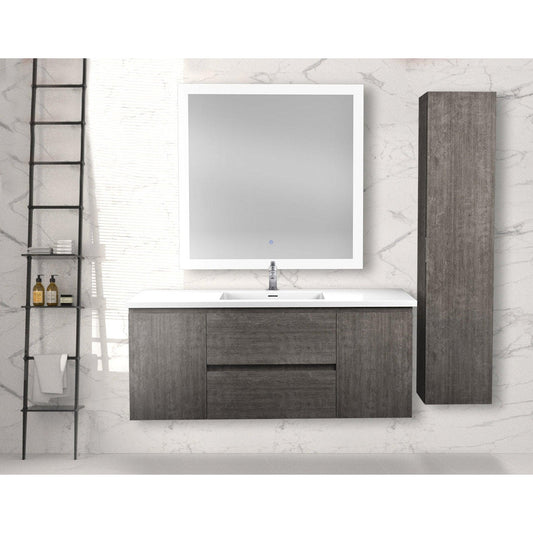 ANZZI Conques 48" x 20" Rich Gray Solid Wood Bathroom Vanity With Glossy White Countertop With Sink and 39" LED Mirror