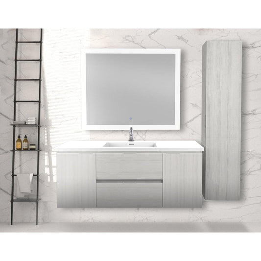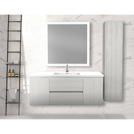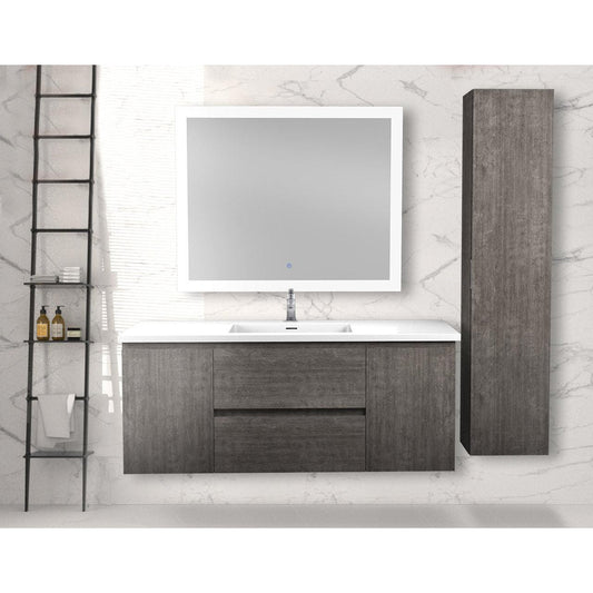 ANZZI Conques 48" x 20" Rich Gray Solid Wood Bathroom Vanity With Glossy White Countertop With Sink, 39" LED Mirror and Side Cabinet