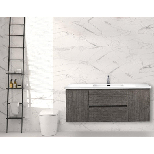 ANZZI Conques 48" x 20" Rich Gray Solid Wood Bathroom Vanity With Glossy White Sink and Countertop