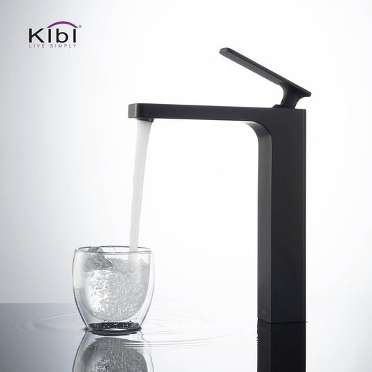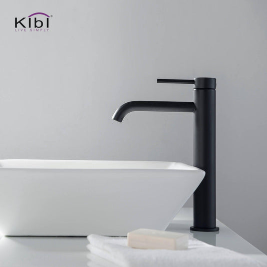 KIBI Infinity Single Handle Matte Black Solid Brass Bathroom Vanity Vessel Sink Faucet